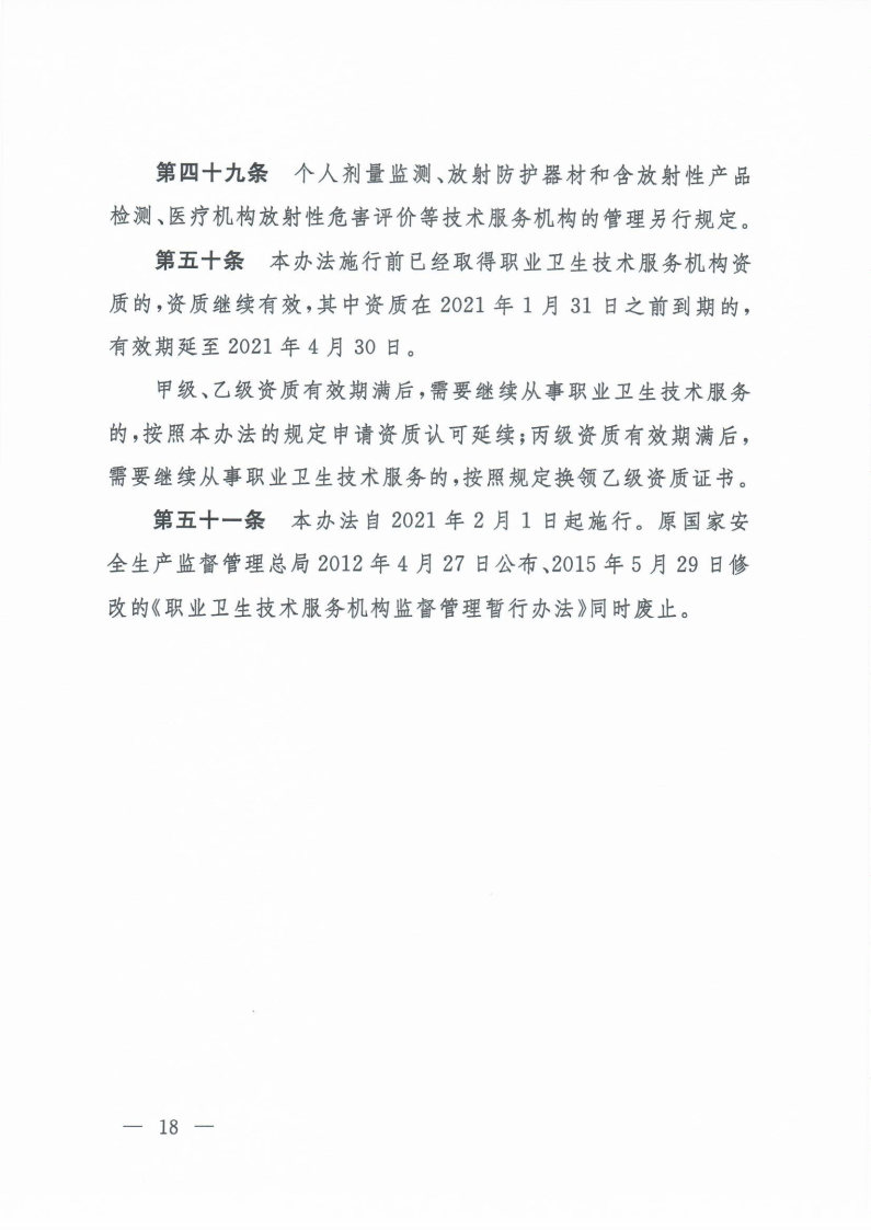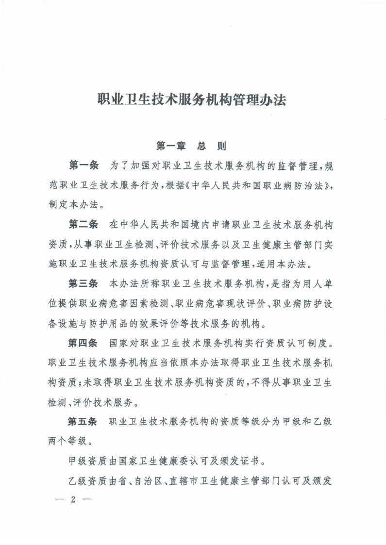 職業(yè)衛(wèi)生技術(shù)服務(wù)機(jī)構(gòu)管理辦法(國(guó)家衛(wèi)生健康委令第4號(hào))